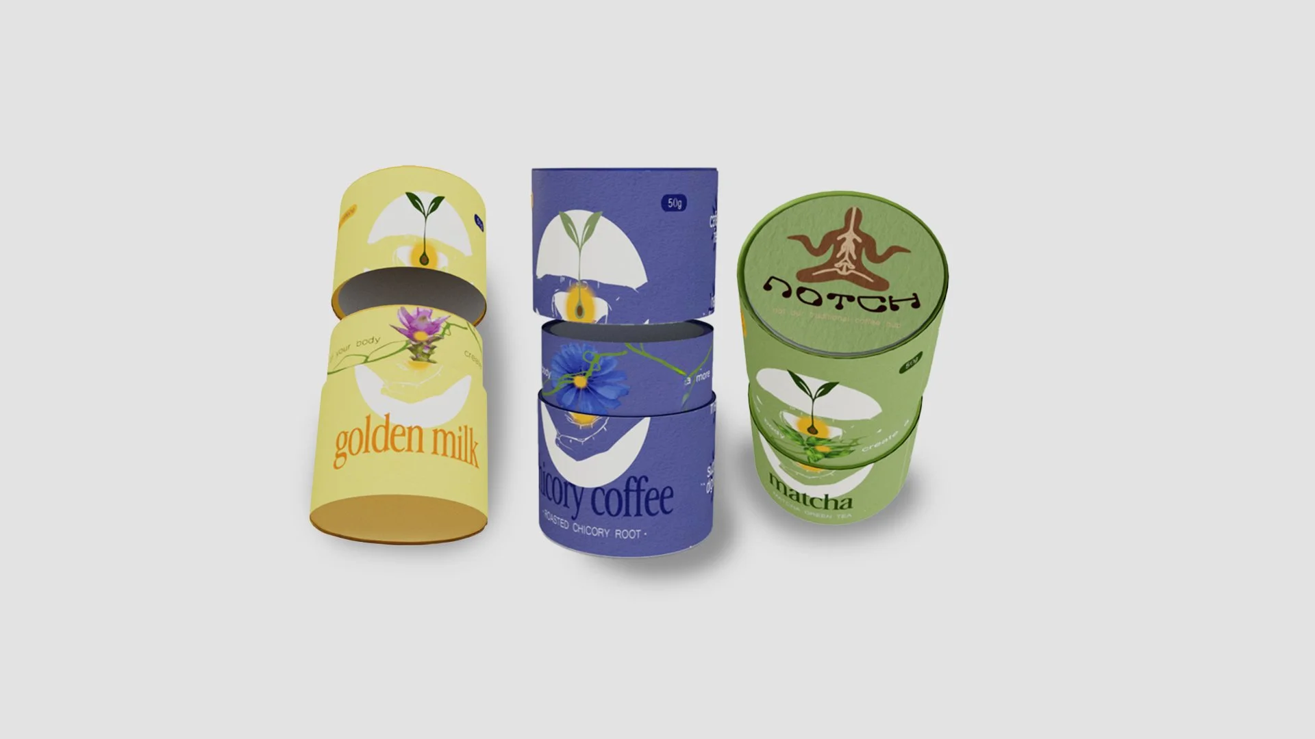 Packaging for NOTCH, a coffee alternative brand aimed at people who view coffee as more than a drink, but as a way to connect with each other and simulate routine. The packaging itself seeks to replace the traditional coffee packaging we are used to and match the younger target of alternative-seeking young adults. The brand NOTCH was invented and developed by me for a final. The logo and advertisments were also developed by me.