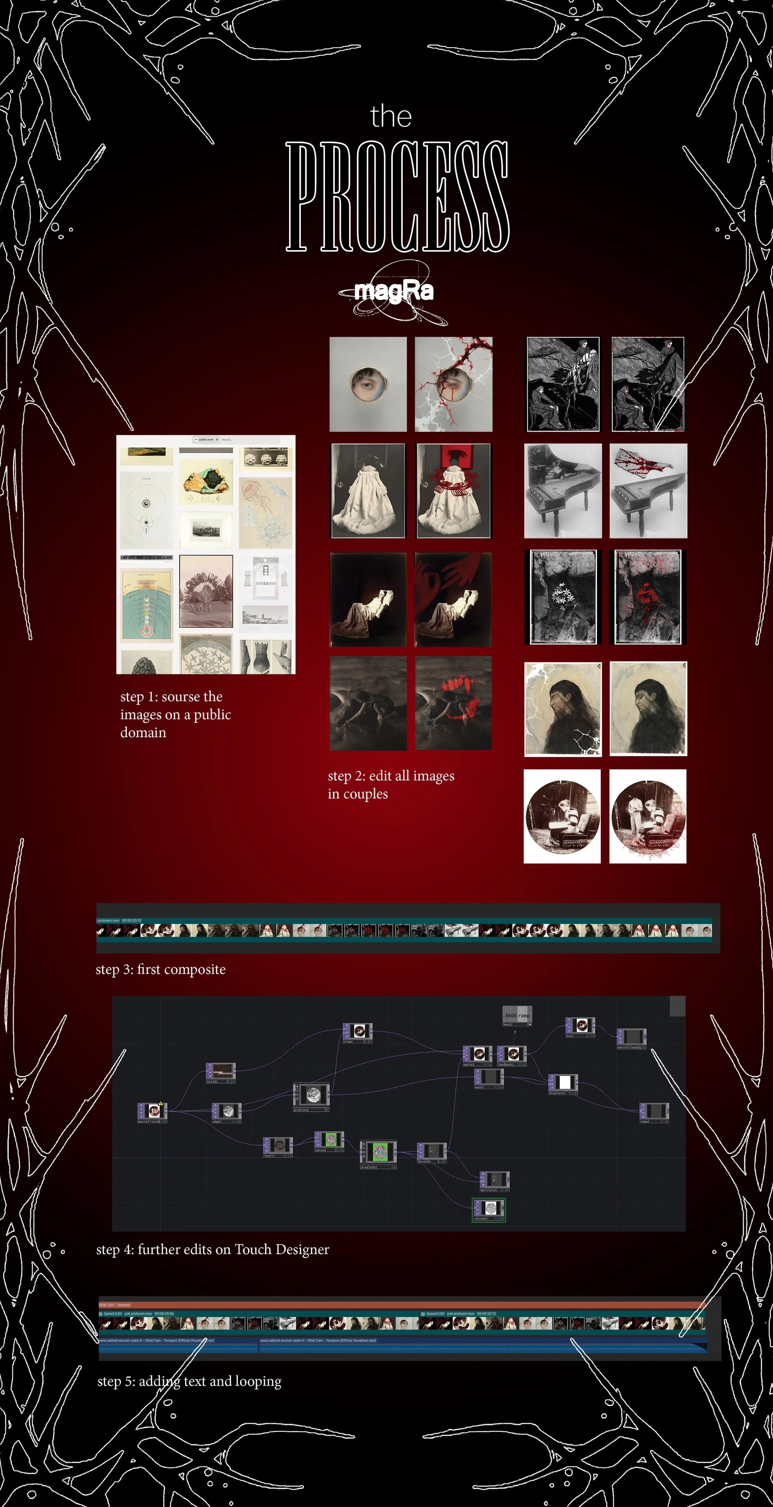 The methodology for this project started at a public archive, where I collected a lot of old photographs in black and white. Afterwards, I distorted them on Photoshop and composited them in a short video. The last part was the most essential: using touch designer, I experimented in distortions and blending of the video. it is a challenge to work with the program, but it was worth it in the end as it gave me this blend between the two contrasting visual components.